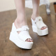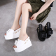 拖鞋女夏高跟增高一字拖防滑休闲鱼嘴厚底坡跟松糕底女士珍珠凉鞋