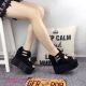2017春夏女鞋新款鱼嘴坡跟单鞋松糕凉靴内增高厚底防水台高跟凉鞋