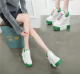 小白 内增高休闲单鞋女 牛皮高跟动运鞋 魔术贴厚底松糕鞋震地王