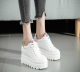 小白鞋内增高女鞋高跟单鞋2017松糕休闲系带韩版学生鞋厚底高跟鞋