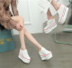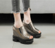 欧美潮鱼嘴单鞋10CM 网鞋 厚底内增高休闲单鞋松糕鞋镂空高跟女鞋