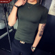 精神小伙夏季韩版修身半高领纯色针织打底衫潮青年时尚短袖t恤男
