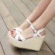 2015新款夏潮甜美34紫高跟鞋43粉松糕厚底坡跟凉鞋白女大码小码40