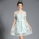 奥芙俪新款2017欧美大码女装胖mm夏装刺绣蕾丝宽松A字显瘦连衣裙