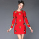 2016秋冬新款胖mm大码女装重工刺绣小熊长袖修身A字裙连衣裙
