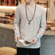 社会小伙春季亚麻长袖t恤日系V领棉麻打底衫时尚男士韩版修身衬衫