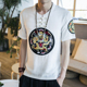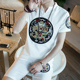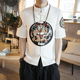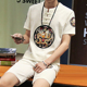 社会精神小伙夏季棉麻龙袍套装中国风男装亚麻短袖T恤半袖印花潮