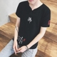 社会精神小伙中国风男装夏季V领亚麻短袖T恤棉麻半截袖青少年男潮