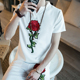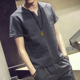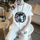 夏季短袖T恤刺绣中国风男装修身社会龙袍半袖青年套装俩件套男潮