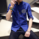 社会精神小伙夏季新款男士中国风刺绣衬衫修身立领男装七分袖衬衣