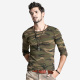 男士t恤 长袖纯棉圆领秋衣紧身修身衣服运动打底衫男迷彩印花体恤
