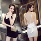 2017夏季夜店女装性感大露背蝴蝶结低胸吊带连衣裙紧身包臀超短裙