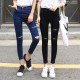 秋季款韩版学生破洞九分牛仔裤女磨破修身显瘦小脚裤弹力铅笔长裤