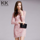 kk春季新品 名媛修身 小高领中长款粉色蕾丝连衣裙 女蕾丝衫
