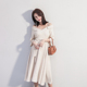 A-MIN欧美小香风一字肩连衣裙女露肩吊带裙a字裙春夏新款中长裙子
