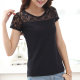 2016春夏时尚蕾丝女装短袖t恤 韩版性感个性气质优雅圆领拼接小衫