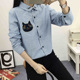 学院风少女春秋装高中学生衬衣卡通刺绣韩版长袖休闲条纹小衫衬衫