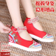 老北京布鞋女2017春季新款时尚布鞋女绣花鞋民族风坡跟内增高女鞋