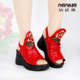 纳妮雅中国风坡跟防水台真皮单鞋 春秋厚底高跟民族风绣花女鞋子