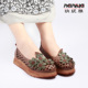 纳妮雅民族风凉鞋坡跟女士大码休闲高跟真皮中年女鞋子鱼嘴夏新款