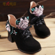 新款老北京布鞋女 民族风女鞋 春秋绣花鞋高跟粗跟单鞋裸靴子