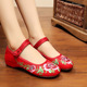 老北京布鞋春季新款女绣花鞋单鞋子中跟透气舞蹈鞋子坡跟民族风