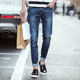 夏季薄款牛仔短裤男破洞中裤青少年复古韩版直筒怀旧男士五分马裤