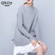 晴碧琳2016新款秋冬宽松七分袖针织衫女套头一字领上衣毛衣打底衫