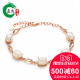 荔尚925银玫瑰金镶嵌和田玉手链 天然玉石手串送妈妈送女友女款