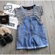 2017新款夏女童条纹T恤+牛仔背带裤套装儿童纯棉休闲T牛仔两件套