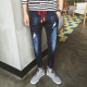 九分牛仔裤男小脚修身韩版潮流2017青少年个性破洞9分乞丐裤男生