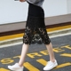2017新款蕾丝裙拼接网纱裙半身裙中长款女裙春秋a字不规则中裙子