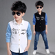 男童长袖衬衣2016秋季儿童牛仔相拼衬衫韩版全棉中大童衬衣春秋装