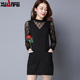 2016秋冬新款女装大码中长款针织衫 修身连衣裙韩版格子打底毛衣