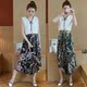 印花连衣裙女2017夏季新款女装韩版名媛气质两件套中长款雪纺套装
