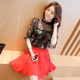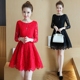 2017春夏蕾丝连衣裙秋季新款韩版女装红色气质长袖打底蓬蓬裙