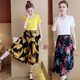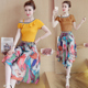 2016夏装新款女装潮韩版时尚两件套名媛印花套装喇叭袖淑女连衣裙
