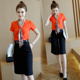 时尚套装女2017夏季新款小香风名媛两件套蝴蝶结雪纺衫+包臀短裙