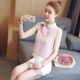 阔腿裤套装女夏季新款时尚V领短袖上衣+气质雪纺时尚裤裙两件套潮