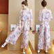 阔腿裤套装女2017夏季新款名媛小香风雪纺衫洋气印花裤裙两件套潮