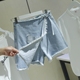 夏装新款高腰白色破洞阔腿牛仔短裤女流苏毛边织带显瘦热裤B78