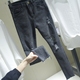 2017春夏装韩版渔网格拼接破洞黑灰色弹力显瘦九分牛仔小脚裤女潮