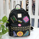 韩版双肩包女铆钉包休闲刺绣徽章背包潮流女包旅游大背包电脑书包
