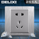 德力西墙壁开关插座面板 拉丝银五孔插座 二三插座5孔开关面板