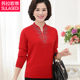 中老年女装春装长袖针织衫大码妈妈毛衣旗袍领打底衫老年人女上衣