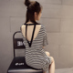 夏季中长款个性露背大款t恤女2017新款韩版五分短袖宽松条纹上衣
