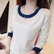 2017春装新款拼色毛衣针织衫女韩版修身套头打底衫圆领长袖上衣潮