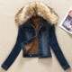2017春季女装 长袖韩版新品修身毛领加绒短款棉衣 加厚牛仔衣外套