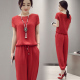 棉麻套装女2017夏季新款韩版短袖上衣小脚裤休闲时尚名媛两件套潮