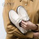 青婉田2017春季新款内增高英伦风女鞋复古真皮平底布洛克女单鞋子